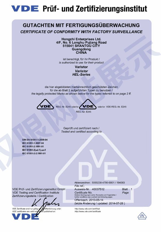廣東鴻志電子科技有限公司成立于1993年,位于美麗的海濱城市汕頭,現(xiàn)已發(fā)展成為元器件制造集團企業(yè),生產壓敏電阻、NTC熱敏電阻、陶瓷電容和金屬化薄膜電容,通過了ISO9001質量體系認證和ISO14001環(huán)境體系認證,以及IATF16949汽車產品質量體系認證...